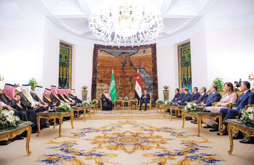 وضمن جولات سمو ولي العهد ولقاءات بالقادة العرب التقى سموه بفخامة الرئيس عبدالفتاح السيسي رئيس جمهورية مصر العربية، وذلك في قصر الاتحادية بالعاصمة المصرية القاهرة.