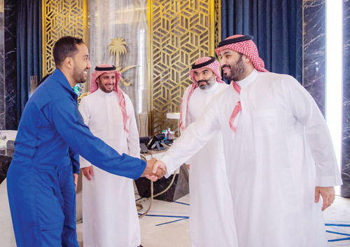 فيما عبر رواد الفضاء عن فخرهم واعتزازهم بلقاء سمو ولي العهد رئيس المجلس الأعلى للفضاء، ومقدمين شكرهم على الدعم المتواصل من لدن سموه الكريم، وأكد كل من رائدة الفضاء ريانة برناوي ورائد الفضاء علي القرني جاهزيتهما الكاملة لهذه المهمة التاريخية، متطلعين لترك بصمة في مجال الفضاء وإثراء التجارب العلمية التي تخدم البشرية، فيما أكد رائدا الفضاء مريم فردوس وعلي الغامدي اللذين ستسند لهما مهام في المحطة الأرضية لمساعدة رائدي الفضاء ريانة برناوي وعلي القرني خلال هذه المهمة العلمية عن فخرهم واعتزازهم. وتؤكد هذه الرحلة الفضائية التاريخية التزام المملكة بدعم جهود استكشاف الفضاء، وتشجيع البحوث العملية في هذا المجال، وتعزيز دور أبناء الوطن في برامج الفضاء ومجالاته من العلوم والتقنية، لتحقيق مستهدفات رؤية المملكة 2030 التي تسعى إلى إبراز دور المملكة في قطاع الفضاء وتقنياته.