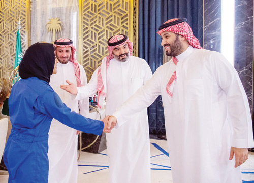 استقبل صاحب السمو الملكي الأمير محمد بن سلمان بن عبدالعزيز ولي العهد رئيس مجلس الوزراء ورئيس المجلس الأعلى للفضاء، أمس، رواد الفضاء السعوديين ريانة برناوي وعلي القرني ومريم فردوس وعلي الغامدي، وذلك قبل انطلاق المهمة العلمية للمملكة إلى محطة الفضاء الدولية وعلى متنها أول رائدة فضاء سعودية وعربية مسلمة ريانة برناوي وعلي القرني والذي يعد أيضاً أول رائد فضاء سعودي يصل إلى محطة الفضاء الدولية في الرحلة المزمع انطلاقها شهر مايو المقبل.