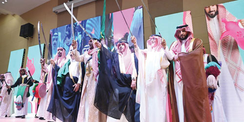 ثم توالت فقرات الحفل وألقيت قصائد وطنية ونبطية، وشاهد الحضور اوبريت عيد الرس، واختتم الحفل بمشاركة العرضة السعودية.