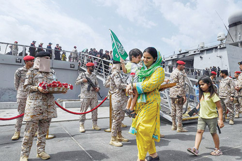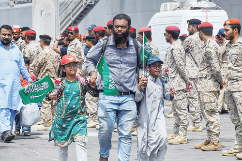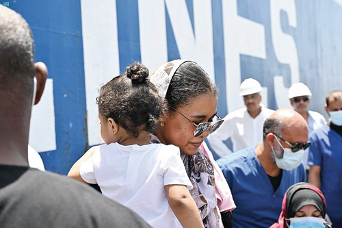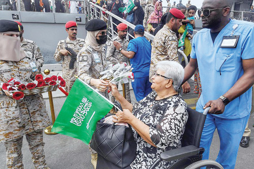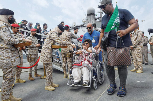 استمراراً للجهود التي تبذلها المملكة العربية السعودية بتوجيهات من القيادة الرشيدة -أيّدها الله- في عمليات إجلاء مواطنيها ورعايا الدول الشقيقة والصديقة من جمهورية السودان إلى المملكة، وصل صباح أمس إلى مدينة جدة 20 مواطناً سعودياً، كما بلغ عدد رعايا الدول الشقيقة والصديقة الذين تم إجلاؤهم نحو 1866 شخصاً من الجنسيات التالية: (تايلند، أستراليا، وراوندا، وجامبيا، وأريتريا، ومالاوي، ومقدونيا، وفرنسا، والهند، والنرويج، وفلسطين، واليمن، والولايات المتحدة الأمريكية، وسوريا، والفلبين، ونيجيريا، وبنجلاديش، والسويد، وكينيا، وتونس، والعراق، وليبيا، والمغرب، والأردن، وموريتانيا، وتنزانيا، وإيران، وباكستان، وكندا، روسيا، وبنما، والإكوادور، إيرلندا، واليونان، وفيتنام، ونيبال، والبوسنة والهرسك، وجنوب السودان، والصومال، بوركينا فاسو، وكوت ديفوار، وغانا، وزيمبابوي، وبورندي، وميانمار، وإندونيسيا، وطاجيكستان، ومنغوليا، وتركيا، وإيطاليا، وإثيوبيا، وتشاد، وألمانيا، وجنوب إفريقيا، وأوغندا، وليبيريا، وناميبيا، وسيراليون، والمملكة المتحدة، وبلجيكا، وبنين، وهولندا، ومصر، وموريشيوس، ورومانيا، وعددٍ من موظفي منظمة الأمم المتحدة)، حيث تم نقلهم من خلال إحدى السفن التابعة للمملكة (أمانة)، وحرصت المملكة على توفير كامل الاحتياجات الأساسية للرعايا الأجانب تمهيداً لتسهيل مغادرتهم إلى بلدانهم كما وصل إلى مدينة جدة صباح أمس الأول 195 شخصاً من رعايا الدول الشقيقة والصديقة من الجنسيات التالية: (باكستان، وفلسطين، وتايلند، وموريتانيا، وسيريلانكا، والولايات المتحدة الأمريكية، وبولندا، والهند، والمملكة المتحدة، والنمسا، وإندونيسيا، وكندا، والعراق، ومصر، وأستراليا، وسوريا)، حيث تم نقلهم من خلال سفينة جلالة الملك «مكة»، تمهيداً لتسهيل مغادرتهم إلى بلدانهم.