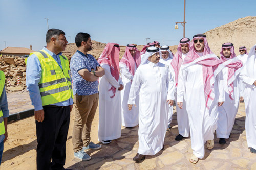 وتجوّل سموه بعد ذلك في المشروع مُبيناً حرص القيادة الرشيدة - أيَّدها الله - على أصالة المنطقة وتطويرها، مؤكداً الدعم غير المحدود من قبل الدولة في هذا الشأن، مُشدداً على ضرورة الاهتمام والعناية بالمقتنيات والمواقع الأثرية بالمنطقة والمحافظة عليها، منوّهاً بما تزخر به المنطقة من مواقع تراثية مميزة، والتي من خلالها يتم تفعيل الأنشطة والبرامج التي تمثّل المنطقة وهويتها العمرانية، كما حث سموه على تسخير كل الإمكانيات المتاحة لتقديم الخدمات البلدية بمنهجية ومهنية عالية لتحقيق أهداف ومستهدفات رؤية السعودية 2030، وفق تطلعات وتوجيهات ولاة الأمر -حفظهم الله-، في تلبية احتياجات المواطنين وتنفيذ المشاريع التنموية وفق أحدث الدراسات.