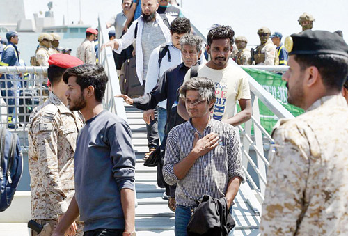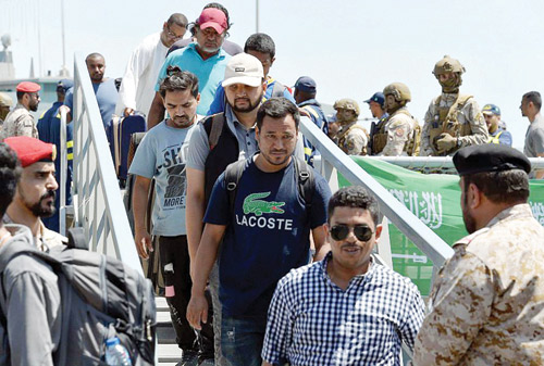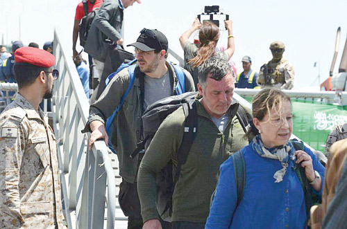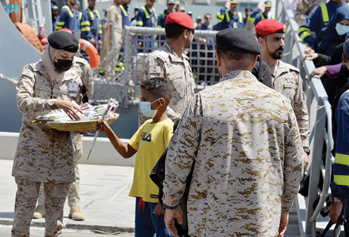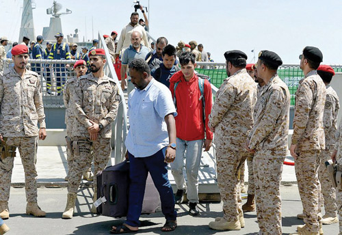 استمراراً للجهود التي تبذلها المملكة العربية السعودية بتوجيهات من القيادة الرشيدة -أيدها الله- في عمليات إجلاء مواطنيها ورعايا الدول الشقيقة والصديقة من جمهورية السودان إلى المملكة، وصل صباح يوم أمس إلى قاعدة الملك عبدالله الجوية بالقطاع الغربي في مدينة جدة 45 مواطناً سعودياً، و36 شخصاً من الجنسية الباكستانية، حيث تم إجلاؤهم من خلال طائرة نقل تابعة للقوات الجوية الملكية السعودية. كما وصلت قبل قليل سفينة جلالة الملك «الدرعية» إلى مدينة جدة، وعلى متنها 52 شخصاً من الجنسيات التالية: (سلطنة عمان، وباكستان، والولايات المتحدة الأمريكية، والنيبال). الجدير بالذكر أن القوات الجوية الملكية السعودية أجلت خلال اليومين الماضيين نحو 185 شخصاً من رعايا الدول الشقيقة والصديقة من الجنسيات التالية: (جنوب إفريقيا، وزامبيا، وكينيا، ومالي، وموزمبيق، ونيجيريا، وإريتريا، والمملكة المتحدة، والسويد، وفرنسا، وهولندا، والنرويج، والولايات المتحدة الأمريكية، وكندا، وأستراليا، ولبنان، وفلسطين، والصومال، وباكستان، وتايلند، والفلبين، وأوغندا، وتشاد، وتنزانيا، وبنين، وإندونيسيا، وتركيا).