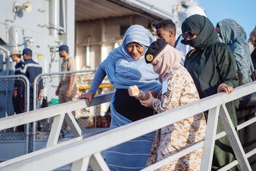 استمراراً للجهود التي تبذلها المملكة العربية السعودية بتوجيهات من القيادة الرشيدة -أيَّدها الله- في عمليات إجلاء مواطنيها ورعايا الدول الشقيقة والصديقة من جمهورية السودان إلى المملكة، وصل مساء أمس الأول عبر سفينة جلالة الملك «أبها» إلى مدينة جدة 41 مواطناً سعودياً، و171 شخصاً من الجنسيات التالية: (أفغانستان، والفلبين، وجزر القمر، وسيريلانكا، وأوكرانيا، ومدغشقر، والمملكة المتحدة، وسوريا، والولايات المتحدة الأمريكية).