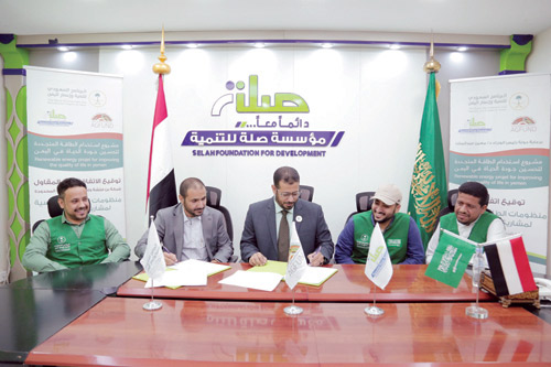 دُشِّنَ أمس المكون الثاني من مشروع استخدام الطاقة المتجددة لتحسين جودة الحياة في اليمن، الذي يتمثل في توفير 35 منظومة ري زراعي تعمل بالطاقة الشمسية، في 3 محافظات يمنية، وهي: (حضرموت، أبين، لحج) الذي يأتي بإسهام ثلاثي من البرنامج السعودي للتنمية وإعمار اليمن وبرنامج الخليج العربي للتنمية «أجفند» ومؤسسة صلة للتنمية. وشهد التدشين توقيع ثلاثة عقود تضم الجهة الاستشارية والمقاول المنفذ والمزارعين المستفيدين من المشروع، بحضور ممثلي البرنامج السعودي لتنمية وإعمار اليمن والمدير التنفيذي لمؤسسة صلة للتنمية علي حسن باشماخ.