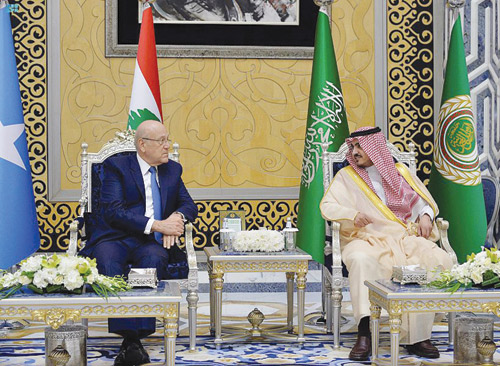 وصل إلى جدة أمس، دولة رئيس وزراء جمهورية لبنان نجيب ميقاتي، للمشاركة في القمة العربية 32، لاجتماع مجلس جامعة الدول العربية. وكان في استقبال دولته بمطار الملك عبدالعزيز الدولي، صاحب السمو الملكي الأمير بدر بن سلطان بن عبدالعزيز نائب أمير منطقة مكة المكرمة، ومعالي الأمين العام لجامعة الدول العربية أحمد أبو الغيط، ومعالي أمين محافظة جدة صالح بن علي التركي، وسفير خادم الحرمين الشريفين لدى الجمهورية اللبنانية وليد بن عبدالله بخاري، ومدير شرطة منطقة مكة المكرمة اللواء صالح الجابري، ووكيل المراسم الملكية الأستاذ فهد الصهيل.