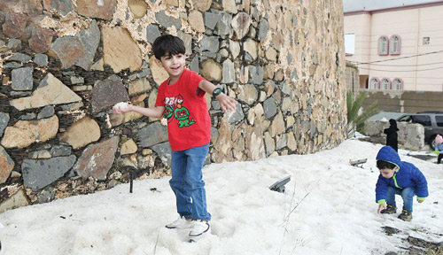 وتسابقت العائلات وبخاصة الأطفال في الاستمتاع بحبات البرد التي تحولت إلى ثلوج سميكة لا تقل عن نصف متر في بعض المواقع.