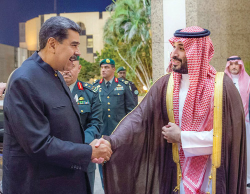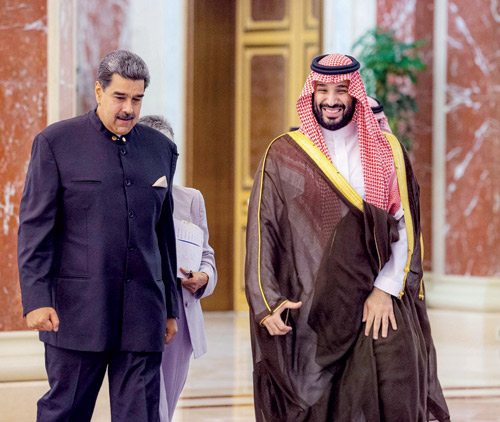 التقى صاحب السمو الملكي الأمير محمد بن سلمان بن عبدالعزيز آل سعود ولي العهد رئيس مجلس الوزراء، في قصر السلام بجدة، مساء أمس الأول، فخامة الرئيس نيكولاس مادورو رئيس جمهورية فنزويلا البوليفارية. ورحب سمو ولي العهد، بفخامة الرئيس في زيارته للمملكة، فيما عبر فخامته عن سعادته بهذه الزيارة ولقائه سمو ولي العهد. وجرى خلال اللقاء، استعراض العلاقات الثنائية بين البلدين الصديقين، وآفاق التعاون وفرص تعزيزه في مختلف المجالات، وتبادل وجهات النظر حيال عدد من الموضوعات ذات الاهتمام المشترك.