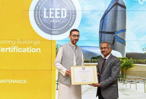 حصل مركز الملك عبد العزيز الثقافي العالمي «إثراء» على شهادة «LEED» عن الفئة الذهبية للأبنية المستدامة من مجلس المباني الخضراء العالمي، وذلك لتحقيقه كافة معايير الأبنية المستدامة. وأوضح المركز أن الحصول على الاعتماد العالمي عن الفئة الذهبية يأتي من خلال تطبيق « إثراء « لكافة الاشتراطات داخل مرافق المبنى وعمليات الصيانة والتشغيل، واستحداث العديد من البرامج البيئية والحفاظ على الموارد وترشيد استهلاكها وإعادة تدوير للعديد منها، مبيناً أن التصميم الخارجي للمبنى واستخدام الأنابيب الفولاذية أسهم في انعكاس أشعة الشمس والسماح بانسياب الهواء وتقليل الحرارة، وخفض استهلاك الطاقة بنسبة 18%، إضافة إلى أن مبادرة إعادة تدوير المواد والاستفادة منها بنسبة 80%، وخفض استهلاك المياه بنسبة 60%. يذكر أن مركز الملك عبد العزيز الثقافي العالمي (إثراء) حصل عام 2021م على شهادة مواءمة من وزارة الموارد البشرية والتنمية الاجتماعية عن الفئة الذهبية، واعتماده كمبنى ملائم لدعم الخدمات التي يقدمها لذوي الإعاقة، وتحقيق المبنى كافة المعايير المعتمدة، إضافة إلى حصوله على شهادة «LEED» للأبنية الجديدة تزامنًا مع إنشائه عام 2018.