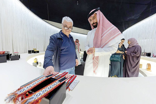 وعرضت في جناح «خوص النخل» قبعات الخوص التي ما زالت تستخدم حتى الآن في المناطق الزراعية جنوب المملكة، إذ ترتديها النساء والرجال أثناء جني المحاصيل اليدوية لحماية رؤوسهم من أشعة الشمس، فيما يشير الجناح إلى تطور صناعة حرفة الخوص حالياً، والتي أُدخلت عليها بعض الحُلي للنساء وشيء من الريحان للرجال، وفي جناح «السدو» انعكست الأنماط المتنوعة في معروضاته، وأبرزت حياة العائلة البدوية وكيف كانت تعيش ببساطة، إذ يحاك السدو وتصنع منه مفروشات يسيرون عليها وحوافظ للطعام، وكذلك الخيم التي يعيشون بداخلها. وفي جناح «نحت الجص» شاهد الزوار المحفورات الحجازية، ومحفورات الجص لمحافظة القطيف، كما تعرفوا على مسميات المنحوتات المتداولة في حقب زمنية قديمة، وكانت تزين مداخل الغرف وفواصل الصالات.