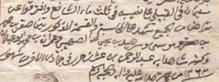 لا يجد الباحث صعوبةً في البحث عن سيرة الشيخ محمد بن مقرن بن سند بن فطاي الودعاني الدوسري لأن كتب التراجم تحدثت عنه بشكل جلي رحمه الله فقد أرسل من قبل الإمامين سعود في وقته والإمام تركي بن عبدالله في أرجاء البلاد للقضاء والإفتاء، والشيخ محمد بن مقرن ولد في قرية دقلة سنة 1205هـ، قال المؤرخ ابن بشر إنه في سنة 1240هـ غرس الشيخ محمد بن مقرن القرينة وسكنها، لكن أكثر مقامه في حريملاء أ. هـ. اتخذ الشيخ المقرن مدينة حريملاء مقرّاً له لتعليم طلابه ويلقي من خلالها دروساً عامةً للناس رحمه الله فتخرج عليه يديه قضاة وطلبة علم ومن أولئك القضاة - حسبما ذكر المؤرخ ابن عيسى في مجموعه - الشيخ عبدالرحمن بن محمد بن عزاز التميمي كما ترجم لابن عزاز المذكور كل من الأساتذة الكرام سليمان بن حمد العزاز، وصاحبي كتاب: التاج المرصع في سير أعلام عمان من مذاهب الأربع في صـ 263. وعوداً على ذي بدء فإنه قد تم تعيين الشيخ العزاز في شبابه إماماً وخطيباً في مدينته ثادق ومن ثم أُوفد من قبل الإمام فيصل بن تركي آل سعود مع القائد سعد بن مطلق المطيري إلى بلاد عمان كقاضٍ شرعي في البريمي ولا تتجاوز مدة إقامته بالبريمي - في نظري - سنة واحدة بموجب الوثيقتين أدناه التي إحداهن كانت في سنة 1261هـ والأخرى في 1263هـ، والجدير بالذكر أن الشيخ عبد الرحمن بن حسن بن محمد بن عبد الوهاب كان يراسل الشيخ عبد الرحمن بن عزاز ويكلفه بحل الدعاوى وتسويتها قضائياً. توفي الشيخ العزاز في سنة 1264هـ في معركة العانكة في صحراء الظفرة، وفي الختام أقول: ولمثل أولئك المواطنين المخلصين تسجل تواريخهم ومناقبهم، انظر على سبيل المثال إلى الوثيقتين المرفقتين كتبهما الشيخ عبدالرحمن بن محمد بن عزاز التميمي رحمه الله ، من ضمن الشهود على إحدى الوثيقتين العم سرهيد بن يحيى بن محمد الصهيبي.
