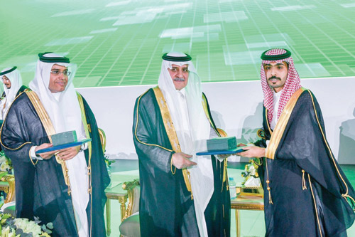 وكان في استقبال سموه لدى وصوله مقر الحفل معالي رئيس الجامعة الدكتور عبدالله بن مفرح الذيابي, ووكلاء الجامعة وعمداء الكليات.