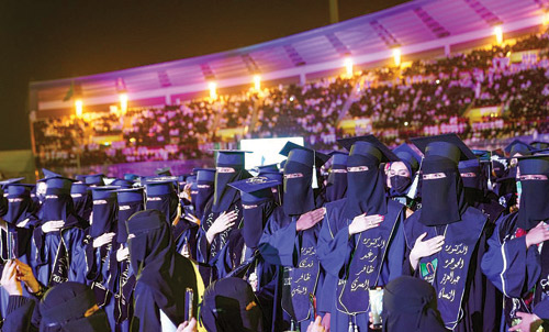 وفور وصول سموه بدأ الحفل المعد بهذه المناسبة بتلاوة آيات من القرآن الكريم، ثم بدأت مسيرة الخريجين في برامج الماجستير والبكالوريوس والدبلومات في مختلف التخصصات.