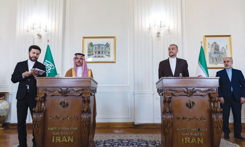 وقال سموه في المؤتمر صحفي المشترك مع معالي وزير خارجية الجمهورية الإسلامية الإيرانية حسين أمير عبداللهيان، على هامش زيارته الرسميه للعاصمة طهران: إن المباحثات بين الجانبين اتسمت بالإيجابية والوضوح، وذلك في إطار استكمال البلدين تنفيذ الاتفاق الموقع في بكين يوم 10 مارس 2023م، مضيفاً أن العمل جارٍ على استئناف عمل البعثات الدبلوماسية والقنصلية في البلدين.