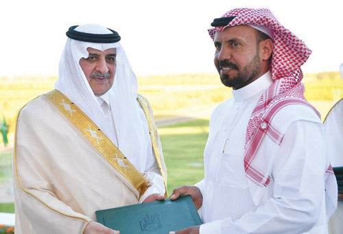 وسلم سمو أمير منطقة تبوك الشهادات والجوائز النقدية للفائزين بالجائزة.