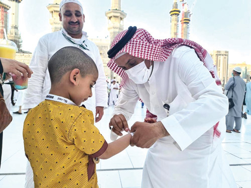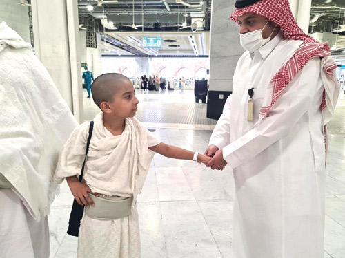 تقوم وكالة الخدمات الاجتماعية والتطوعية والإنسانية بشؤون الحرمين، ممثلة في الإدارة العامة للخدمات الاجتماعية عبر إدارة خدمة الزائر الصغير، بتوزيع أساور معصم اليد للزائر الصغير في المسجد الحرام، ضمن مبادرة حفاوة التي تندرج ضمن حملة الرئاسة «خدمة الحاج والزائر وسام فخر لنا» في عامها الحادي عشر تحت شعار «من الوصول إلى الحصول».