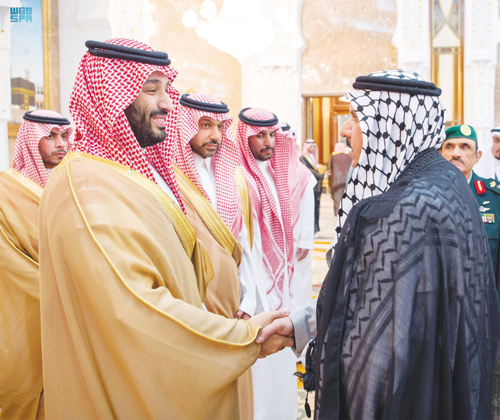 بعد ذلك تشرّف الجميع بالسلام على سمو ولي العهد.