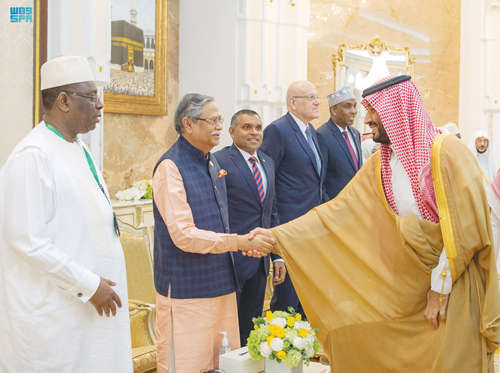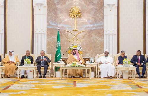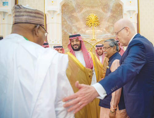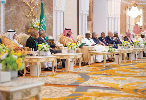 وفي بداية الحفل، صافح سمو ولي العهد، جلالة الملك عبدالله رعاية الدين المصطفى بالله شاه ملك ماليزيا، وفخامة الرئيس ماكي سال رئيس جمهورية السنغال، وفخامة الرئيس محمد شهاب الدين رئيس جمهورية بنغلاديش، وفخامة الرئيس عارف علوي رئيس جمهورية باكستان، ومعالي السيد فيصل نسيم نائب رئيس جمهورية المالديف، ودولة السيد مصطفى مدبولي رئيس الوزراء في جمهورية مصر العربية، ودولة السيد محمد نجيب عزمي ميقاتي رئيس مجلس الوزراء اللبناني، ودولة السيد حمزة عبدي بري رئيس مجلس وزراء الصومال، ومعالي السيد أوحمودو محمدو رئيس مجلس الوزراء رئيس الحكومة في النيجر، ودولة السيد محمد اشتيه رئيس مجلس الوزراء في دولة فلسطين، وأصحاب المعالي رؤساء مجالس النواب في عدد من الدول الإسلامية.