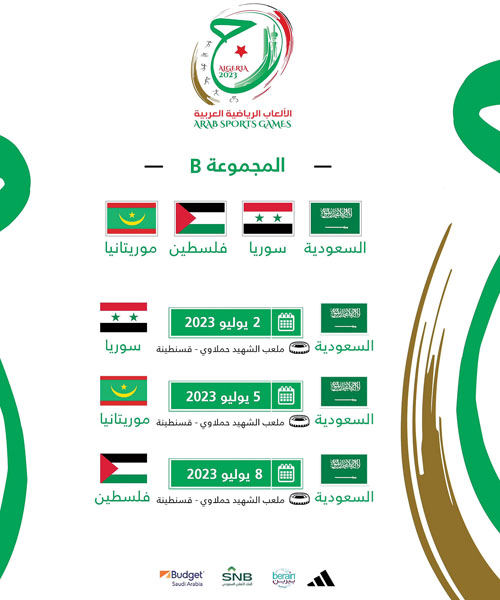 تشارك السعودية في دورة الألعاب العربية الخامسة عشرة «الجزائر 2023» التي تنطلق يوم الأربعاء القادم وتستضيفها الجزائر حتى الخامس عشر من يوليو (تموز) الحالي بمشاركة جميع الدول العربية. وستكون المشاركة السعودية في 17 لعبة، منها 14 أولمبية، وهي: كرة القدم، والمبارزة، والريشة الطائرة، والسباحة، والدراجات، والجودو، والمصارعة، وألعاب القوى، والكاراتيه، والملاكمة، ورفع الأثقال، وكرة الطاولة،
