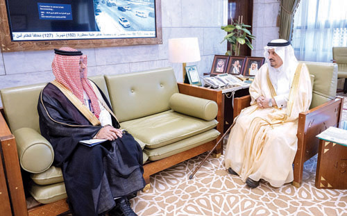 من جهة ثانية، استقبل سمو أمير منطقة الرياض في مكتبه بقصر الحكم أمس، مدير فرع هيئة الاتصالات والفضاء والتقنية