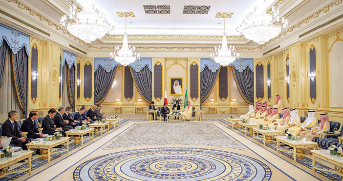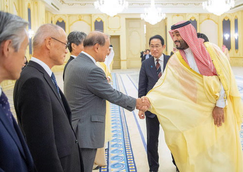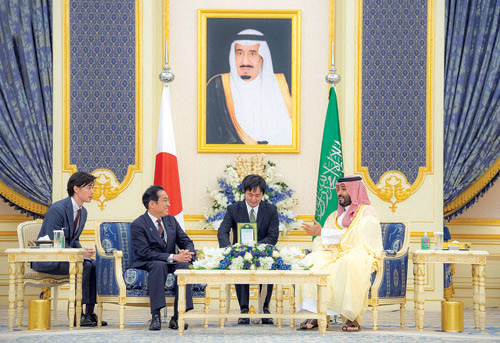 وعقد سمو ولي العهد ودولة رئيس الوزراء الياباني جلسة مباحثات رسمية، رحب سمو ولي العهد في بدايتها بدولة رئيس الوزراء الياباني في المملكة، فيما عبّر دولته عن سعادته بهذه الزيارة ولقائه سمو ولي العهد. وجرى خلال الجلسة تبادل الأحاديث حول العلاقات الثنائية، وبخاصة أوجه التعاون في المجالات الاقتصادية والتجارية والاستثمارية والثقافية وسبل تعزيز التعاون، وفق الرؤية السعودية- اليابانية 2030، إلى جانب استعراض وجهات النظر في عدد من المسائل الإقليمية والدولية، والجهود المبذولة بشأنها. وعقب جلسة المباحثات، التقى سمو ولي العهد، بحضور دولة رئيس الوزراء الياباني، رؤساء الشركات وأصحاب الأعمال في اليابان.