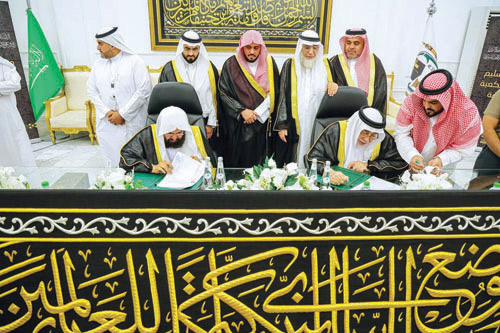 وقد جرى التوقيع على محاضر الاستلام والتسليم بين الرئيس العام لشؤون المسجد الحرام والمسجد النبوي، وكبير سدنة بيت الله الحرام، خلال الحفل الذي أقامته الرئاسة بالمجمع، تمهيداً لاستبدال ثوب الكعبة المشرفة غرة محرم 1445هـ.