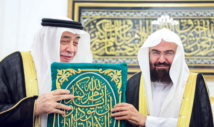 سلّم معالي الرئيس العام لشؤون المسجد الحرام والمسجد النبوي الشيخ الدكتور عبدالرحمن بن عبدالعزيز السديس، أمس، كسوة الكعبة المشرفة لكبير سدنة بيت الله الحرام الدكتور صالح بن زين العابدين الشيبي، بحضور قيادات الرئاسة العامة لشؤون المسجد الحرام والمسجد النبوي، وذلك خلال إقامة مراسم التسليم بمقر مجمع الملك عبدالعزيز لصناعة كسوة الكعبة المشرفة.