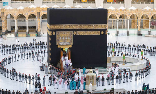 وأكّد الدكتور السديس حرص القيادة الرشيدة -أيدها الله- على العناية بالحرمين الشريفين، وقال: «إن المملكة منذ توحيدها على يدي المؤسس الملك عبدالعزيز -رحمه الله- وأبنائه البررة من بعده وصولاً إلى العهد الزاهر الميمون عهد خادم الحرمين الشريفين الملك سلمان بن عبدالعزيز آل سعود، وسمو ولي عهده الأمين -حفظهما الله- قد دأبوا على العناية والاهتمام بكل ما يُعنى بقضايا الإسلام والمسلمين، لاسيما الحرمين الشريفين والكعبة المشرفة». وأضاف: «العناية بالكعبة المشرفة ما هي إلا سمة من سمات قادة هذا البلاد المباركة، وأن تعظيمها والعناية بها من تعظيم الشعائر الإسلامية المقدسة؛ قال تعالى «ذَلِكَ وَمَن يُعَظِّمْ شَعَائِرَ اللَّهِ فَإِنَّهَا مِن تَقْوَى الْقُلُوبِ», حيث إنها سنة سار عليها الصحابة الكرام -رضوان الله عليهم- والخلفاء من بعدهم عبر تاريخ هذا الأمة المجيدة», سائلاً الله تعالى أن يديم نعمة الأمن والأمان على هذه البلاد، وأن يجزي قادتها خير الجزاء على ما يبذلونه من خدمات جليلة للحرمين الشريفين وقاصديهما.