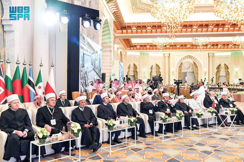 وانطلق المؤتمر بتلاوة آيات من كتاب الله الكريم, تلاها كلمة المملكة العربية السعودية ألقاها معالي وزير الشؤون الإسلامية والدعوة والإرشاد الشيخ الدكتور عبداللطيف بن عبدالعزيز آل الشيخ رحب في بدايتها بأصحاب المعالي والفضيلة المفتين والعلماء المشاركين في أعمال المؤتمر في رحاب مكة المكرمة, مشيراً إلى أن هذا المؤتمر يجسد المعنى العظيم للتشاور وينطلق من هذه البلاد المباركة المملكة العربية السعودية التي تبنت هذا المبدأ العظيم منذ نشأتها على يد الإمام المجدد الملك عبدالعزيز بن عبدالرحمن الفيصل -طيب الله ثراه - وهي تحمل رسالة الإسلام الصافية، وتنشر مبادئ العدل والرحمة والوسطية والاعتدال في منهج أصيل أصبح مثالاً يحتذى وأثراً يقتفى في الدعوة إلى الله تعالى وفق منهج الكتاب الكريم والسنة النبوية وفهم سلف لهذه الأمة. وأضاف أن هذا المنهج يجمع بين الأصالة والمعاصرة والحفاظ على الثوابت والأخذ بالمتغيِّرات فيما يحقق المصلحة الدينية والدنيوية, مؤكدة أن المملكة بقيادة خادم الحرمين الشريفين وسمو ولي العهد -أيّدهما الله- تدعو العالم أجمع لهذا المنهج الذي يحمل الخير والرحمة والدعوة والاعتدال ونبذ الغلو والتطرف والانحلال والإلحاد.