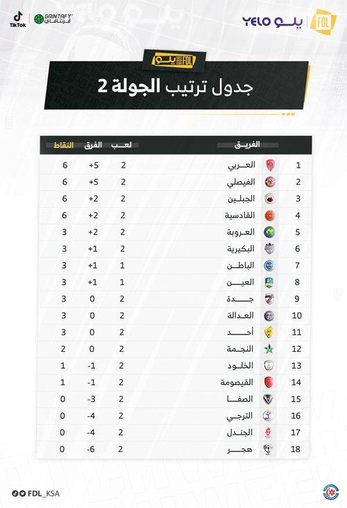 بهذه النتيجة رفع الجبلين رصيده إلى 6 نقاط، وبقي القيصومة على رصيده نقطة وحيدة.