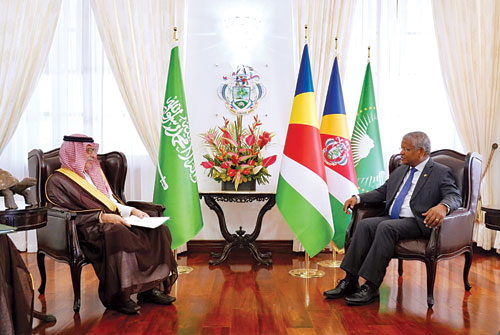 كما بعث خادم الحرمين الشريفين الملك سلمان بن عبدالعزيز آل سعود -حفظه الله-، رسالة شفهية، لفخامة الرئيس وافيل رامكالا، رئيس جمهورية سيشل، تتصل بالعلاقات الثنائية بين البلدين وسبل تعزيز التعاون المشترك. وقام بنقل الرسالة، معالي المستشار بالديوان الملكي الأستاذ أحمد بن عبدالعزيز قطان، خلال استقبال فخامة الرئيس رامكالا له، بالمقر الرئاسي، في العاصمة فيكتوريا أمس. ونقل معاليه خلال الاستقبال، تحيات خادم الحرمين الشريفين الملك سلمان بن عبدالعزيز آل سعود، وصاحب السمو الملكي الأمير محمد بن سلمان بن عبدالعزيز آل سعود ولي العهد رئيس مجلس الوزراء -حفظهما الله- لفخامته، وتمنياتهما لحكومة وشعب جمهورية سيشل بالتقدم والازدهار، فيما حمَّله فخامته تحياته وتقديره لخادم الحرمين الشريفين، وسمو ولي العهد، وحكومة وشعب المملكة العربية السعودية. وجرى خلال الاستقبال، استعراض العلاقات الثنائية بين البلدين وسبل تعزيزها في المجالات كافة بما يخدم تطلعات البلدين. وقد أكد فخامته خلال الاستقبال دعم بلاده الكامل لطلب المملكة لاستضافة معرض «إكسبو 2030» في مدينة الرياض، والترحيب بعقد القمتين «القمة السعودية الأفريقية الأولى، والقمة العربية الأفريقية الخامسة» في المملكة هذا العام. فيما عبر معالي المستشار قطان عن شكر وتقدير حكومة المملكة لهذا الدعم الذي يأتي انطلاقاً من العلاقات المميزة بين البلدين.