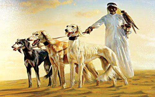 لعلك لا تجد أحذق من (أبي نواس) في تصوير (الكلاب)؛ وكان، كما يذكر (الجاحظ)(1)، «قد لعب بالكلاب زمانًا، وعرف منها ما لا تعرفه الأعراب.» وله في ذلك أراجيز استشهد منها (الجاحظ)(2) بعشر، كلها تدل على تمام معرفته بهذا الحيوان. يقول في إحدى طردياته(3):