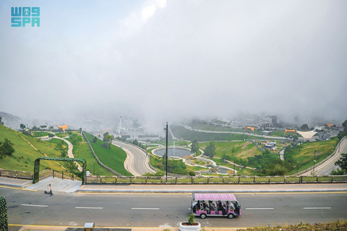 والتقطت عدسة «واس» مناظر الضباب وهو يعانق قمم جبال الباحة الشاهقة وتخلله بين أشجارها.