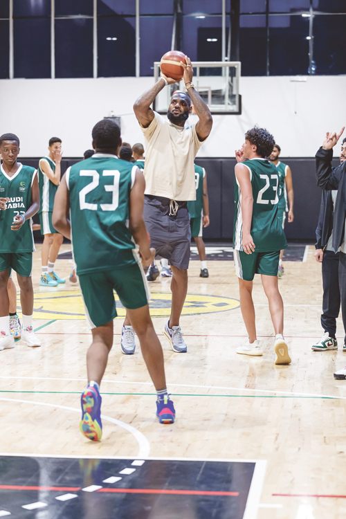 في أول زيارة لنجم كرة السلة الأمريكي والهدّاف التاريخي لدوري كرة السلة الأمريكي للمحترفين (NBA) «ليبرون جيمس» للمملكة، شارك النجم الأمريكي يوم الجمعة الماضي في حصتين تدريبيتين مع لاعبي المنتخب السعودي لكرة السلة الناشئين وبعض لاعبات المنتخب الأول للسيدات دعماً وتحفيزاً لهم كجزء من فترة زيارة التي ستستمر لمدة ثلاثة أيام.