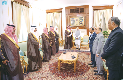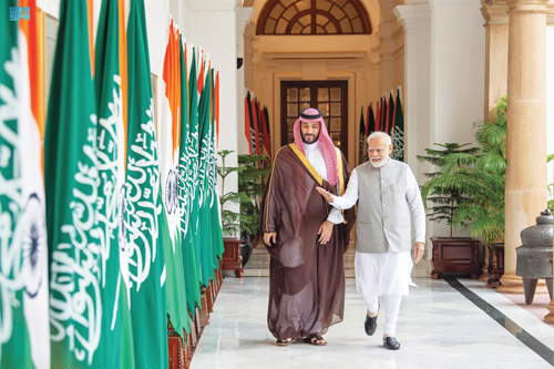 التقى صاحب السمو الملكي الأمير محمد بن سلمان بن عبد العزيز آل سعود، ولي العهد رئيس مجلس الوزراء، في قصر حيدر أباد بنيودلهي، أمس، دولة رئيس وزراء جمهورية الهند السيد ناريندرا مودي. وفور وصول سمو ولي العهد لقصر حيدر أباد، التقطت الصور التذكارية. وجرى خلال اللقاء بحث علاقات الصداقة والتعاون الثنائي بين البلدين في مختلف المجالات وفرص تطويرها، بالإضافة إلى استعراض القضايا الإقليمية والدولية ذات الاهتمام المشترك والجهود المبذولة بشأنها.