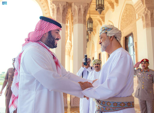 استقبل جلالة السلطان هيثم بن طارق، سلطان عُمان، في قصر البركة في العاصمة العُمانية مسقط، أمس صاحب السمو الملكي الأمير محمد بن سلمان بن عبدالعزيز آل سعود ولي العهد رئيس مجلس الوزراء وذلك خلال الزيارة الخاصة التي يقوم بها سموه لسلطنة عمان. ونقل سمو ولي العهد خلال الاستقبال تحيات خادم الحرمين الشريفين الملك سلمان بن عبد العزيز آل سعود -حفظه الله- لجلالة سلطان عُمان، فيما حمله جلالته تحياته لخادم الحرمين الشريفين. وجرى خلال الاستقبال تبادل الأحاديث الودية واستعراض العلاقات الأخوية بين البلدين الشقيقين. حضر الاستقبال صاحب السمو الملكي الأمير عبدالله بن بندر بن عبدالعزيز وزير الحرس الوطني وصاحب السمو الملكي الأمير خالد بن سلمان بن عبدالعزيز وزير الدفاع وصاحب السمو الأمير بدر بن عبدالله بن فرحان وزير الثقافة. كما حضر الاستقبال صاحب السمو السيد شهاب بن طارق نائب رئيس الوزراء لشؤون الدفاع وصاحب السمو السيد ذي يزن بن هيثم ال سعيد وزير الثقافة والرياضة والشباب وصاحب السمو السيد بلعرب بن هيثم آل سعيد.