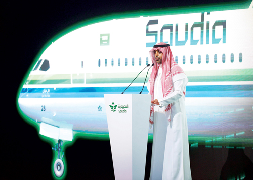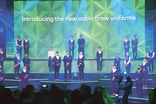 وأوضح معالي مدير عام مجموعة السعودية المهندس إبراهيم بن عبدالرحمن العُمر أن «السعودية» تشهد عصراً جديداً ومرحلة مميزة، حيث بدأت انطلاقتها بطائرة والآن يتجاوز أسطولها 140 طائرة تربط من خلالها أرجاء المملكة وتصل إلى أكثر من 100 وجهة في 4 قارات حول العالم لتصبح بذلك إحدى أكبر شركات الخطوط الجوية في المنطقة. وقال: «يشكل اسم وهوية «السعودية» جزءاً أساسياً من تاريخ الطيران وتطوره في المملكة، ويحمل المواطنون مشاعر عاطفية إيجابية خاصة تجاه العلامة، لذلك حرصنا على دمج هذا التراث الغني في هويتنا الجديدة، مع إضافة عناصر تعكس منهجيتنا الطموحة التي تسعى إلى ترك انطباع لا ينسى لدى الضيوف من جميع أنحاء العالم». وشهد الحفل الإعلان عن باقة من المبادرات في إطار مشروع التحول الرقمي، بدءاً من تقنية الذكاء الاصطناعي كمساعد افتراضي يحمل اسم «سعودية»، وهو الأول من نوعه في المنطقة، ويعمل على تمكين الضيوف من إتمام جميع إجراءات الحجز والطيران باستخدام هذه التقنية الفعالة بطريقتي الدردشة الكتابية والصوتية، إلى جانب خدمة المحفظة الإلكترونية التي ستمكّن القطاع العام الحكومي من إصدار وإعادة إصدار التذاكر الحكومية بكل سهولة من خلال منصة رقمية موحدة، وبالإضافة إلى تمكين رقمي لجميع عمليات ومميزات برنامج الفرسان، ويضاف إلى ذلك بدء العمل بأنظمة رقمية متطورة تقدم حلولاً سريعة وخيارات مناسبة لظروف التشغيل المختلفة، وتساهم في سرعة ودقة وجودة وتكلفة التشغيل. وعززت ارتباطها بالمملكة العربية السعودية من خلال تدشين هويتها الجديدة بألوانها الثلاثة؛ الأخضر الذي يجسد لون العلم رمز الفخر والاعتزاز ولون النخلة التي ترمز للكرم والثقافة والضيافة السعودية، واللون الأزرق الذي يمثل لون بحر المملكة وسمائها وتستلهم منه ارتفاع سقف طموحاتها عبر المبادرات النوعية التي سيتم إطلاقها مستقبلاً، واللون الرملي الذي يرمز لثرى الوطن ويعزز الأصالة والجذور الصلبة ومن خلاله ستواصل الاهتمام بكوادرها البشرية مع تطوير المكان والاستثمار على أرض الوطن. وتعكس السعودية اهتمامها بالثقافة والهوية الوطنية بما يلامس الحواس الخمس للضيوف، وذلك عبر الإعلان الرسمي عن قائمة الطعام على متن طائراتها والتي تتميز بطابع سعودي تتضمن أكثر من 40 صنفا من السفرة السعودية حيث سيتعرف الضيوف من خلالها على التنوع الغذائي لمختلف مناطق المملكة، إلى جانب طرح مجموة المناديل المعطرة التراثية والمستوحاة روائحها من بعض التراث غير المادي السعودي، علاوةً على عكس الهوية السعودية على التصاميم والألوان الجديدة لمقصورة الضيوف، وإثراء أنظمة الترفيه على الطائرة بالمحتوى المحلي السعودي من أفلام وقنوات وبرامج صوتية، بالإضافة إلى الأنغام الموسيقية على متن الطائرات والتي استخدم فيها الأدوات الموسيقية السعودية. كما أطلقت الخطوط الزي الجديد للملاحين الجويين والذي صُمم بطابع سعودي فريد، فيما يعكس أسلوب الضيافة الهوية الوطنية عبر تقديم القهوة السعودية بجودة عالية مع أفضل أنواع التمور التي تزخر بها المملكة، علاوةً على الدور الذي يلعبه الطاهي الجوي لعكس الثقافة السعودية في الوجبات، وإلى جانب ذلك استخدام المواد الأولية من خيرات أرض الوطن.