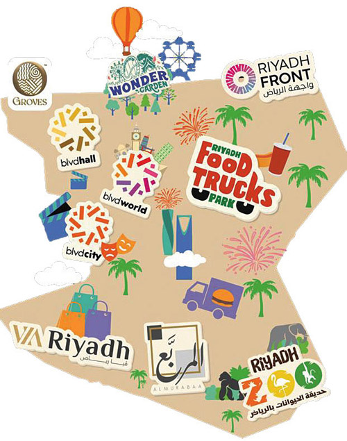 وسيشهد «موسم الرياض» هذا العام استضافة أكثر من 100 من أشهر (الفود تركس) حول العالم في تجمع في منطقة واحدة، ومعرض السيارات الفاخرة والمميزة والذي سيكون على مساحة 150 ألف متر مربع تشمل 1000 سيارة نادرة، ومعرض (أنا عربية) ومعرض الألعاب (RTF) ومعرض وحفل جوائز المؤثرين وصناع المحتوى (Concon)، ومعرض وبطولة الكلاب وتجربة البحث عن الكنز التي تجمع بين الحقيقة في مناطق الموسم والواقع الافتراضي بجائزة تتجاوز الـ 6 ملايين ريال هي الأكبر من نوعها في العالم.
