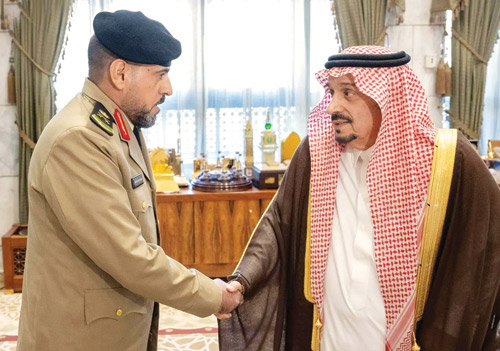 من جهة ثانية استقبل صاحب السمو الملكي الأمير فيصل بن بندر بن عبدالعزيز أمير منطقة الرياض في مكتبه أمس قائد قوة أمن المنشآت بالمنطقة اللواء مبارك بن محمد القحطاني، الذي قدم للسلام على سموه بمناسبة ترقيته إلى رتبة لواء.