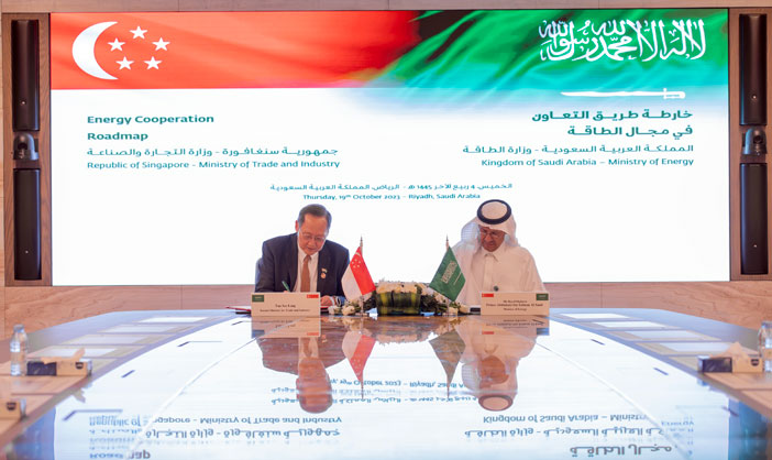 وقّع صاحب السمو الملكي الأمير عبدالعزيز بن سلمان بن عبدالعزيز وزير الطاقة، ومعالي وزير القوى العاملة الوزير الثاني للتجارة والصناعة في جمهورية سنغافورة الدكتور تان سي لينغ، خارطة طريق للتعاون في مجال الطاقة بين المملكة وسنغافورة.