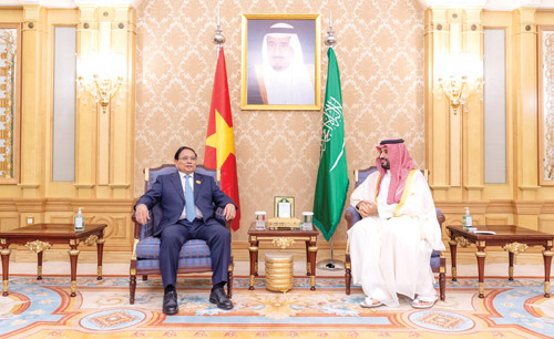 كما التقى صاحب السمو الملكي الأمير محمد بن سلمان بن عبدالعزيز آل سعود ولي العهد رئيس مجلس الوزراء، في الرياض، مساء أمس الأول دولة السيد فام مينه تشينه رئيس وزراء فيتنام الاشتراكية، وذلك على هامش انعقاد قمة الرياض بين مجلس التعاون لدول الخليج العربية ودول رابطة الآسيان.