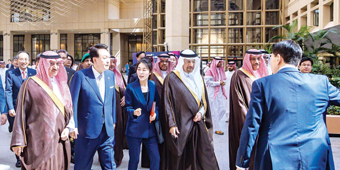 قام فخامة الرئيس يون سوك يول رئيس جمهورية كوريا بزيارة أمس لجامعة الملك سعود شارك خلالها في فعالية «لقاء الأجيال» مع عدد من الطلاب والطالبات، بحضور معالي وزير التعليم رئيس مجلس إدارة الجامعة الأستاذ يوسف بن عبدالله البنيان ومعالي رئيس الجامعة بدران العمر. وأعرب الرئيس الكوري عن سعادته بهذا اللقاء مع شباب المملكة،منوهاً برؤية السعودية 2030 ومستهدفاتها لعدد من القطاعات الحيوية ليكون الشباب والأجيال القادمة مشاركاً في بناء المستقبل السعودي، متمنياً للجميع التوفيق في مسيرتهم العلمية والعملية. حضر المناسبة معالي وزير الاستثمار المهندس خالد بن عبدالعزيز الفالح الوزير المرافق والوفد الرسمي المرافق لفخامته.