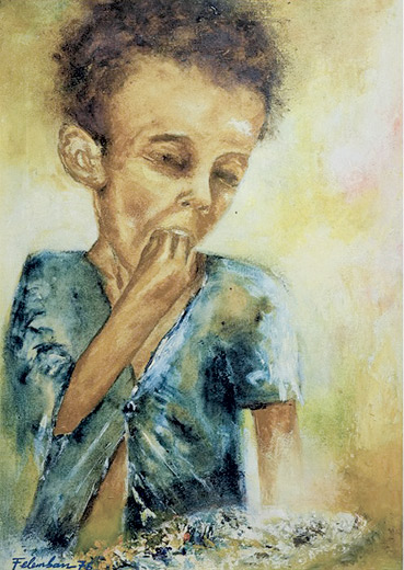 (أشعر بسعادة غامرة ونحن نتجول بين لوحات الفنان الكبير والرائد أحمد فلمبان, أحمد فلمبان من الفنانين المتميزين جداً, رجل غني بفنه وثقافته ولغاته وهو فنان وناقد ومؤلف وعازف, فالفن يحيط به من جميع الاتجاهات, هذا المعرض ربما يختلف عن معارض أحمد فلمبان السابقة من حيث تحديد الموضوع, حيث نقل في هذه اللوحات واقعاً نعيشه, حالة هلع وخوف ورؤية سوداوية من خلال ما عاشه الناس أثناء جائحة كورونا, لا تدري أن الأشخاص في هذه الأعمال هم أحياء أم أن الموت قضى عليهم وما زالوا شامخين بإصرار, رغم النظرة السوداوية إلا أننا نجد بصيصاً من الأمل في بعض اللوحات, نحن أمام مجموعة من الأعمال المتميزة وهي فعلاً من الأعمال الخالدة التي يمكن رؤيتها في كل زمان ومكان, فهي لا تنتمي لفئة اجتماعية معينة أو جغرافية محددة).