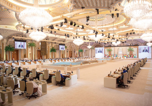 نيابة عن خادم الحرمين الشريفين الملك سلمان بن عبد العزيز آل سعود -حفظه الله-، رأس صاحب السمو الملكي الأمير محمد بن سلمان بن عبد العزيز آل سعود، ولي العهد رئيس مجلس الوزراء - حفظه الله -، وافتتح أعمال القمة العربية الإسلامية المشتركة غير العادية بالرياض.