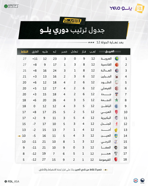 وأنتهت مواجهة فريقي هجر والعين بالتعادل السلبي؛ ليرفع هجر رصيده إلى 8 نقاط بالمركز ما قبل الأخير، والعين 10 نقاط بالمركز الرابع عشر.