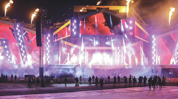 دشن مساء الخميس، المهرجان الموسيقي الأضخم في الشرق الأوسط «ساوند ستورم»، وسط حضور مئات الآلاف من محبي الموسيقى العالمية، وتجملت 8 مسارح متنوعة استقطبت الزوار في يومه الأول، حيث تزين مسرح «بيج بيست» الذي يعد أضخم مسرح متنقل في الشرق الأوسط، بحضور نجوم الأغنية العربية والعالمية.