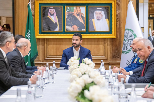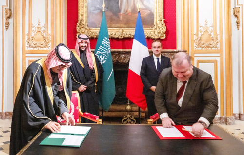 على صعيد متصل عقد صاحب السمو الملكي الأمير خالد بن سلمان بن عبدالعزيز وزير الدفاع في باريس أمس اجتماعًا مع عدد من رؤساء كبرى الشركات الصناعية الفرنسية، وذلك في إطار زيارة سموه الرسمية إلى جمهورية فرنسا. وجرى خلال الاجتماع استعراض فرص التعاون الواعدة في مجال الصناعات العسكرية، والبحث والتطوير، ونقل وتوطين التقنية وفق رؤية المملكة 2030. حضر الاجتماع معالي رئيس هيئة الأركان العامة الفريق الأول الركن فياض بن حامد الرويلي، ومعالي مساعد وزير الدفاع المهندس طلال بن عبدالله العتيبي، ومعالي مساعد وزير الدفاع للشؤون التنفيذية الدكتور خالد بن حسين البياري، ومدير عام مكتب وزير الدفاع هشام بن عبدالعزيز بن سيف، والملحق العسكري بسفارة المملكة العربية السعودية في باريس وبيرن العميد الركن إبراهيم بن ناصر المطوع. فيما حضره من الشركات الفرنسية رئيس مجلس الإدارة الرئيس التنفيذي لشركة (نافال جروب) إريك بوميليه، ورئيس مجلس الإدارة الرئيس التنفيذي لشركة (داسو للطيران) إريك ترابييه، والرئيس التنفيذي لشركة (إم بي دي إيه) إريك بيرانجيه.