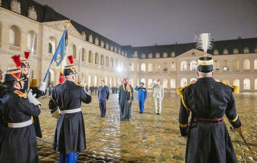 وصل صاحب السمو الملكي الأمير خالد بن سلمان بن عبدالعزيز وزير الدفاع والوفد المرافق له، إلى العاصمة الفرنسية باريس في زيارةٍ رسمية؛ وذلك بناءً على توجيه من صاحب السمو الملكي الأمير محمد بن سلمان بن عبدالعزيز آل سعود ولي العهد رئيس مجلس الوزراء -حفظه الله-. وسيلتقي سموه خلال الزيارة عددًا من المسؤولين الفرنسيين؛ لبحث مجالات التعاون والتنسيق المشترك بين البلدين الصديقين، ومناقشة عدد من الموضوعات ذات الاهتمام المشترك. وقد استقبل معالي وزير القوات المسلحة لدى الجمهورية الفرنسية سيباستيان ليكورنو، بمقر المتحف الوطني العسكري الفرنسي (ليزانفاليد) في العاصمة الفرنسية باريس، صاحب السمو الملكي الأمير خالد بن سلمان بن عبدالعزيز وزير الدفاع، وذلك في إطار زيارة سموه الرسمية إلى جمهورية فرنسا. وفور وصول سمو وزير الدفاع أجريت لسموه مراسم استقبال رسمية بساحة التشريفات، استعرض فيها حرس الشرف، وعزف السلام الوطني للبلدين، ثم التقطت الصورة التذكارية مع سموه. بعد ذلك، عقد سمو وزير الدفاع ومعالي وزير القوات المسلحة الفرنسية جلسة مباحثات رسمية جرى خلالها استعراض العلاقات الإستراتيجية بين البلدين الصديقين، والتعاون العسكري والدفاعي وسبل تعزيزه وتطويره، ورؤية البلدين المشتركة لأمن المنطقة واستقرارها. كما بحث الجانبان مستجدات الأوضاع على الصعيدين الإقليمي والدولي، بالإضافة إلى مناقشة عددٍ من الموضوعات ذات الاهتمام المشترك. وعقب جلسة المباحثات، شهد سمو وزير الدفاع ومعالي وزير القوات المسلحة الفرنسية توقيع مشروع خطة تنفيذية للتعاون في مجالات القدرات والصناعات العسكرية والأبحاث والتطوير بين وزارة الدفاع في المملكة العربية السعودية ووزارة القوات المسلحة في الجمهورية الفرنسية.