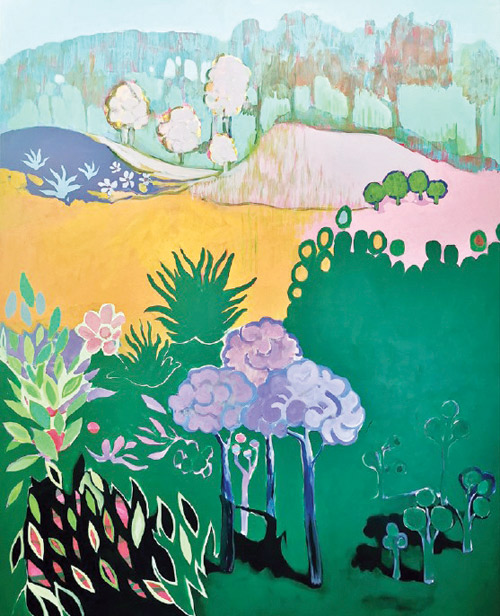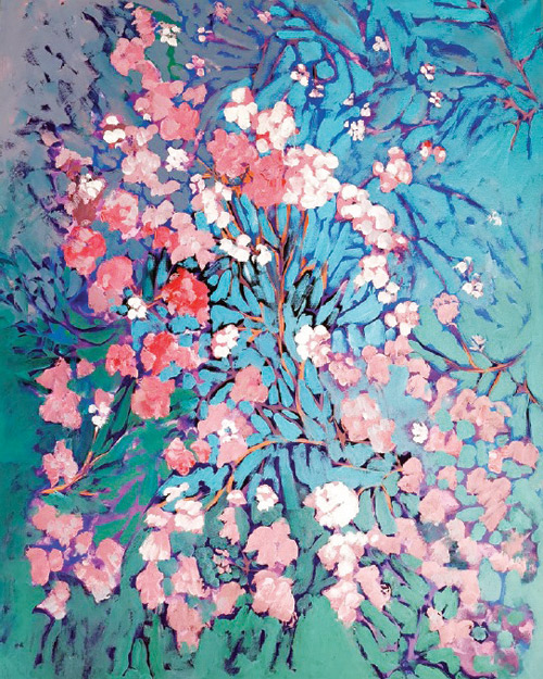 الطبيعة والزهور وزهو الألوان هي مفردات أعمالها التشكيلية حيث قالت: (أعتقد بأنه طالما هناك ما يكفي من الكآبة في العالم فعمدت إلى رسم مناظري الطبيعية وزهوري المعاصرة بألوان زاهية تشبه الحلم، وتثير مشاعر تدعونا للتأمل الهادئ والفرح والسعادة، واللون هو ما يجعلني سعيدة، لذلك فإني أستخدم ألوان الأكريليك لتكوين باقة جميلة من الألوان المختلفة لتعكس سماءً وردية خلف سهول خضراء مع زهور مترامية).