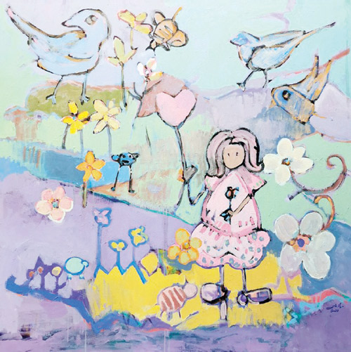 عملها مع الأطفال وارتباطها بهم جعلهم وألوانهم الموضوع الرئيسي لأعمالها والمفردات الطفولية هي مكون هذه الأعمال فقالت: (العمل مع الأطفال جعلني أرى الأشياء من منظور جديد ومختلف، قلوب صغيرة ونقية تنبض براءةً ولا تعرف سوى الحب والفرح، فقد أثّر فيَّ الطفل ببساطته وعفويته وشغفه وجعلني في شوق دائم للعودة إلى هذه الطفولة، ربيع وزهر، ففرح الأطفال لا يعادله أي فرح، تساؤلاتي عندما كنا صغاراً كلانا شاطرنا هذه البراءة والحب، أنا وأنت).